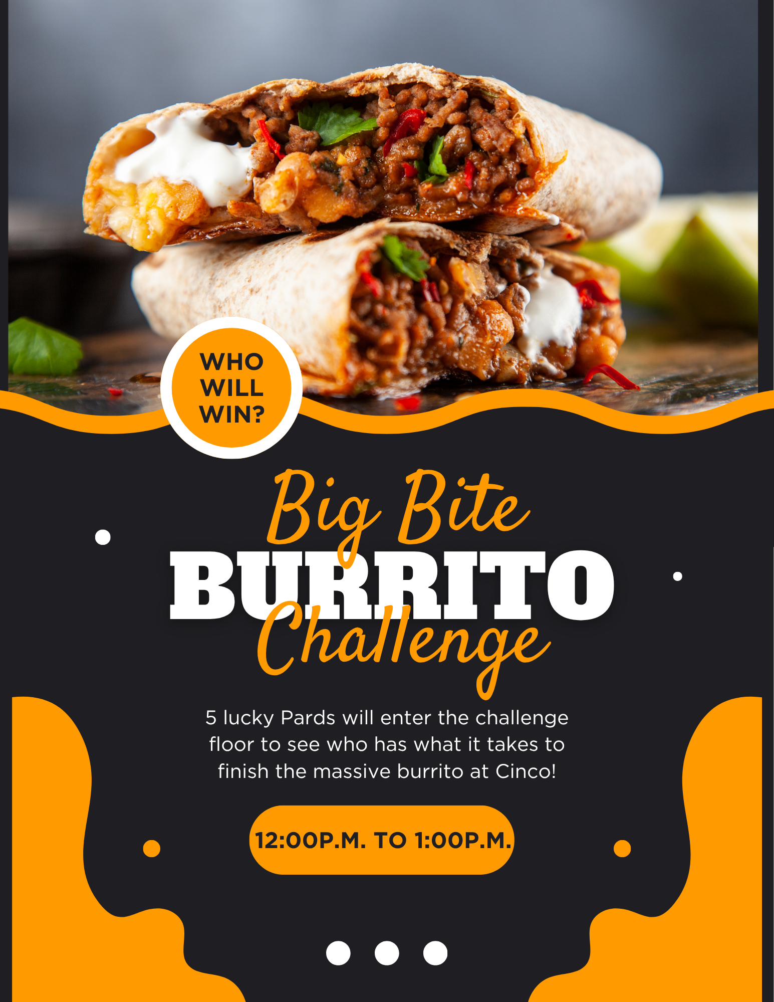 Come cheer on your friends and see who will take home the Big Bite Burrito Challenge bragging rights!